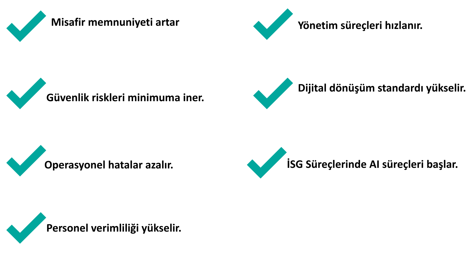 Otel genel alanlarından mini club operasyonlarına, personel yönetiminden acil durum süreçlerine kadar tüm kritik noktaları tek bir platformdan yönetmenizi sağlayarak, işletmenizin dijital dönüşümünü hızlandırır.